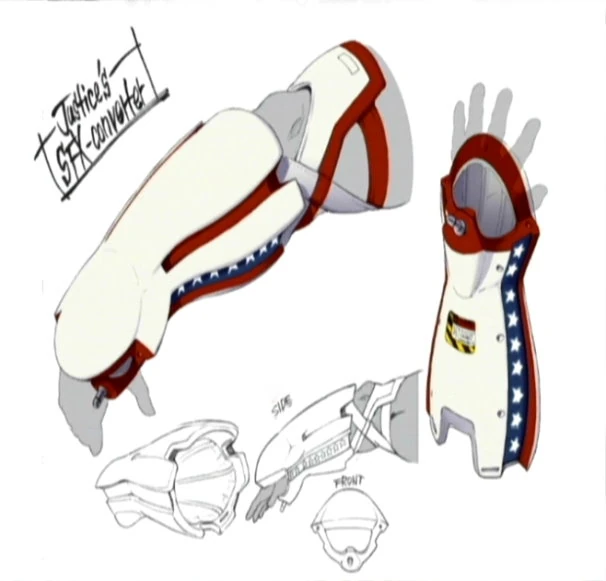 There are two trading cards featuring the SFX Converter in the Design Materials set. These are the sixty-sixth and sixty-seventh trading cards which depict the arm and head peripherals respectively. Several cards in the set also feature Destroyman wearing the SFX Converter as well.